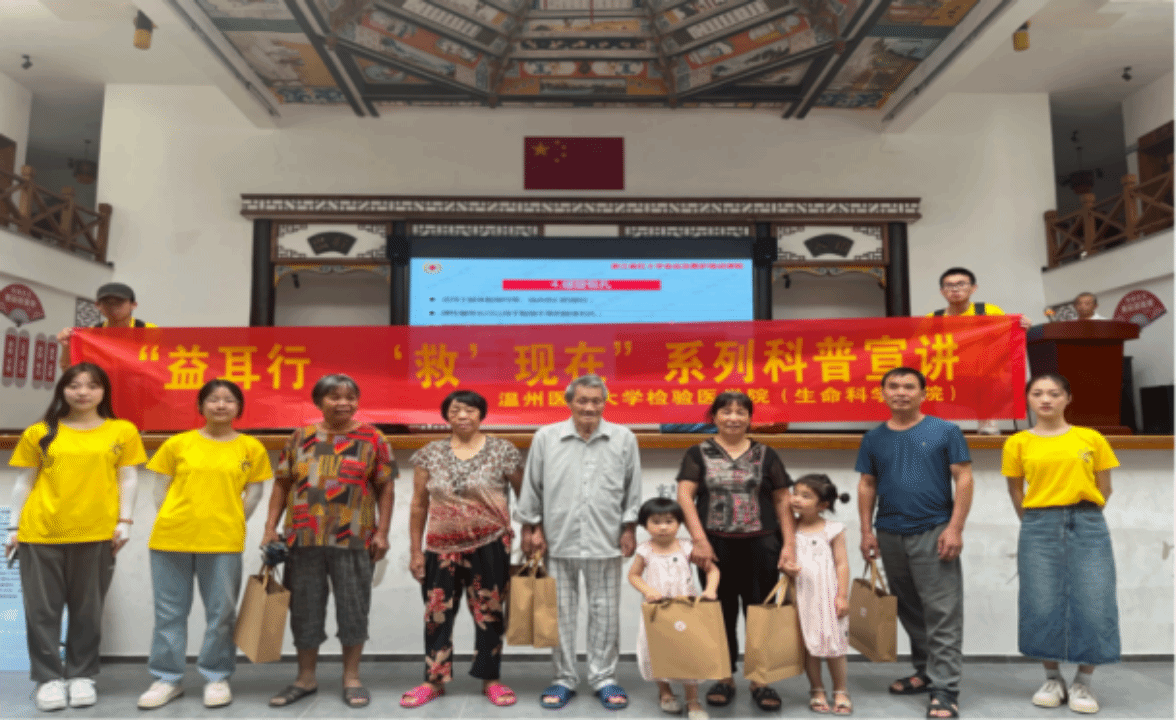 7月8日-7月12日,公司“益耳赋能,健康共富”暑期社会实践团联合永嘉县红十字会、永嘉县大若岩镇政府,在大若岩镇开展多期“益耳行,‘救’现在”系列乡村急救知识培训和“医路长廊”主题义诊活动。