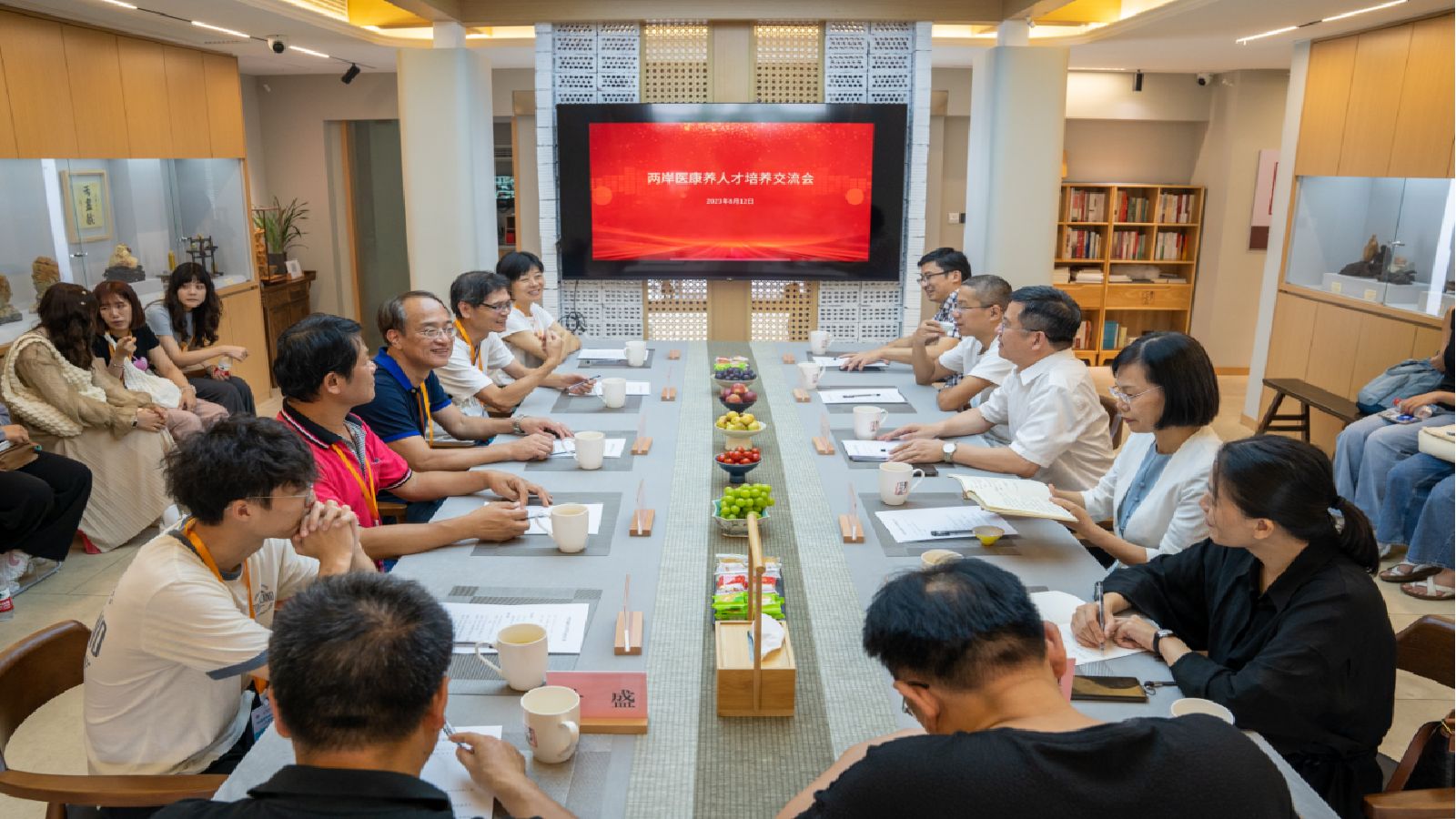 8月12日下午,研习营师生受邀参加了两岸医康养人才培养交流会。执行经理郑晓群及陪同人员与研习营师生进行了充分的交流,共同讨论区域康养人才培养模式中的灵活多样性,包括开设多种不同专业的培养课程,提供丰富的实践机会,以及注重培养员工的创新能力和实践能力。通过建立两岸医康养人才培养交流机制,为医康养人才的培养提供有效的交流平台和机会。