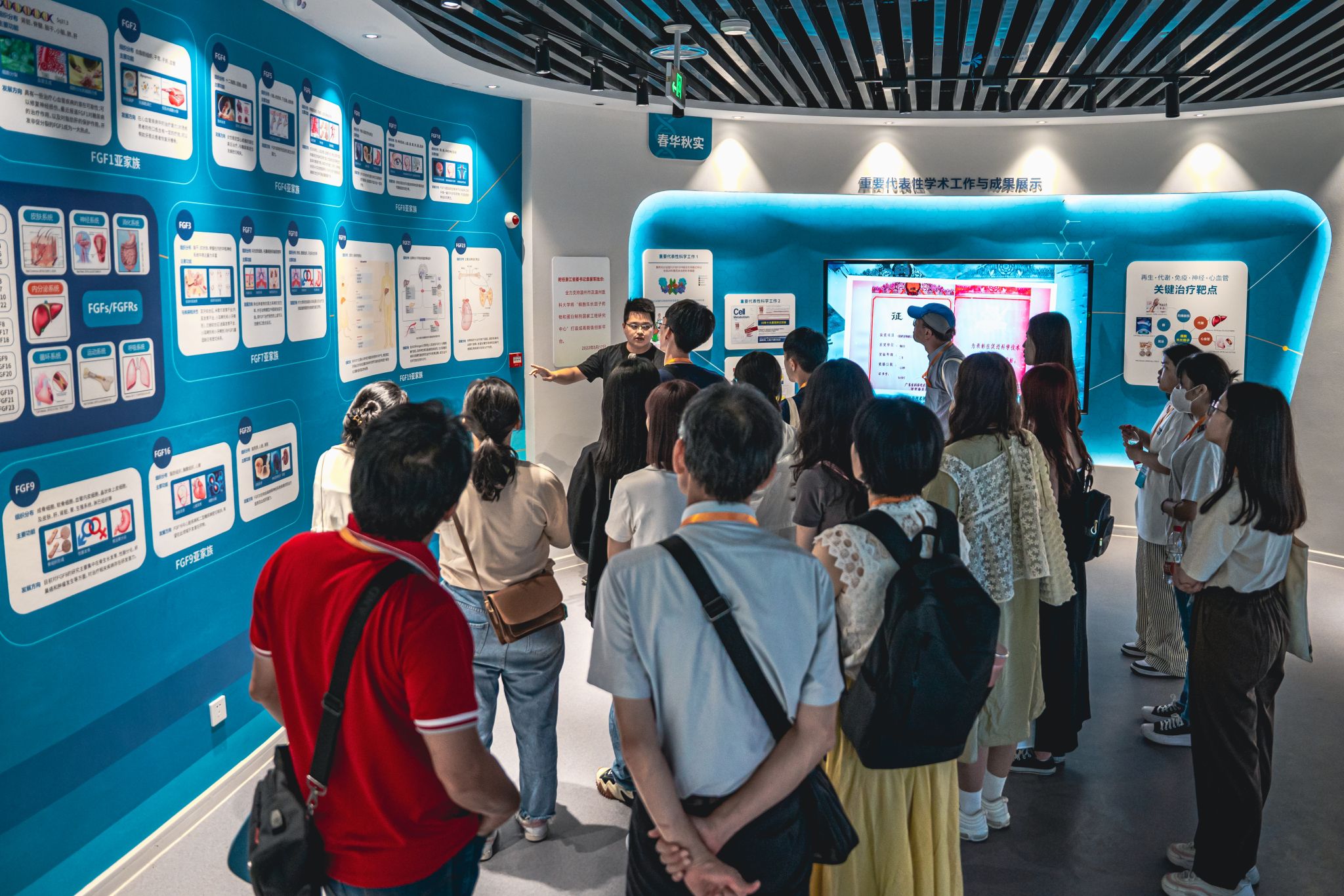 8月10日下午,研习营师生前往中国基因药谷和中国眼谷进行参观学习。研习营师生在药谷认真聆听生长因子的发现过程,纷纷感叹发现者的聪明才学和生长因子的强大功效,在眼谷领略了国内最先进的眼科技术发展历程,并现场体验眼谷自研自产的各种高端护眼产品。“很多产品都是我第一次体验到,效果很棒,没想到药谷和眼谷有如此强大的科研能力和创新能力及成果转化能力,真的令人赞叹。”来自辅英科技大学的许晏硕同学如是说。