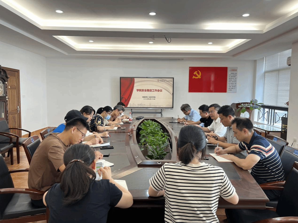会议传达了学校安全稳定工作会议精神,并对学院安全稳定工作进行研究部署。会议强调要增强风险意识、强化责任意识、准确把握要求,对安全隐患的排查整治要做到全过程、全要素、全覆盖,严格落实双节期间值班和每日一报制度,及时消除风险隐患,实现闭环化安全管理。