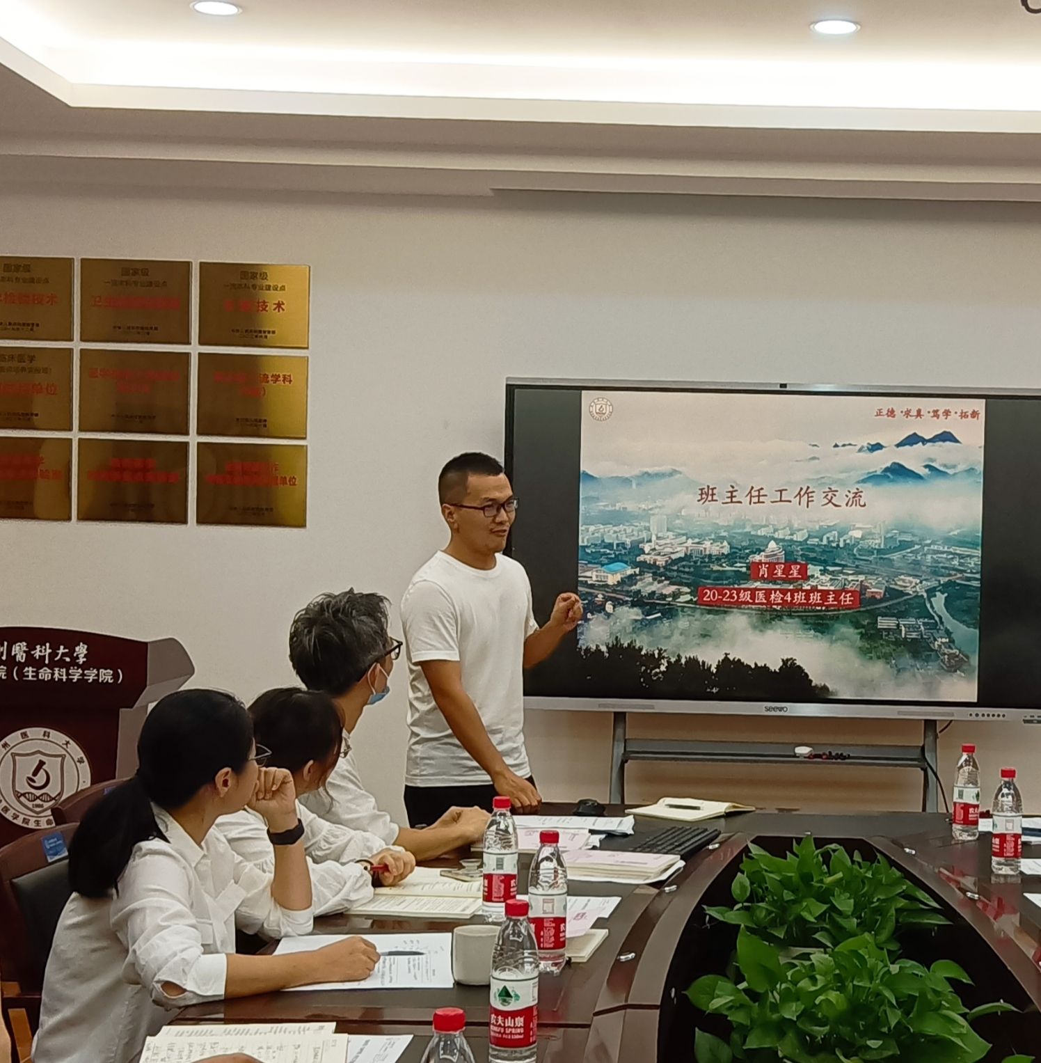 陈贤新副书记作总结发言。他对班主任的辛勤付出表示衷心感谢,并对如何做好班主任工作提出了三点建议:一要进一步强化工作责任意识,提高政治站位,班主任作为高校“三全育人”工作的重要践行者之一,要肩负起立德树人的重要使命;二要进一步明晰工作职责,立足员工思想和学习生活实际,帮助员工做好思想引领、学业指导、职业规划等工作,积极助力员工成长成才;三要进一步提升工作能力和水平,充分发挥自身特点和优势,创新工作思路和方法,真正成为员工锤炼品格的引路人、员工学习知识的引路人、员工实现人生价值的引路人。