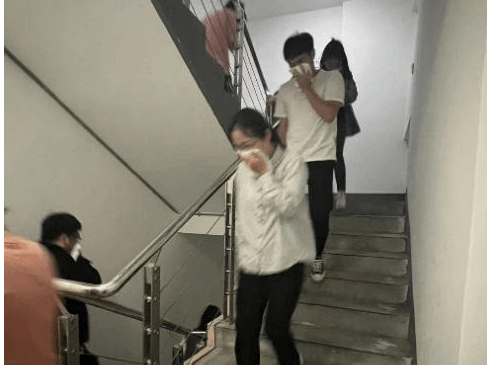 演习正式开始后,科研楼南七楼模拟着火。楼哲丰副经理率先触发手动报警,并和周边老师形成第一灭火力量。消控室老师迅速赶来现场确认情况后向学校监控中心报警,并协助灭火。总指挥胡雪知老师发出人员疏散指令后,消控室立即输出消防广播,启动电梯紧急迫降。科研平台管理老师引导师生从消防楼梯安全有序疏散。指挥员同时命令灭火行动组快速到达火灾现场形成第二灭火力量,迅速控制火情。