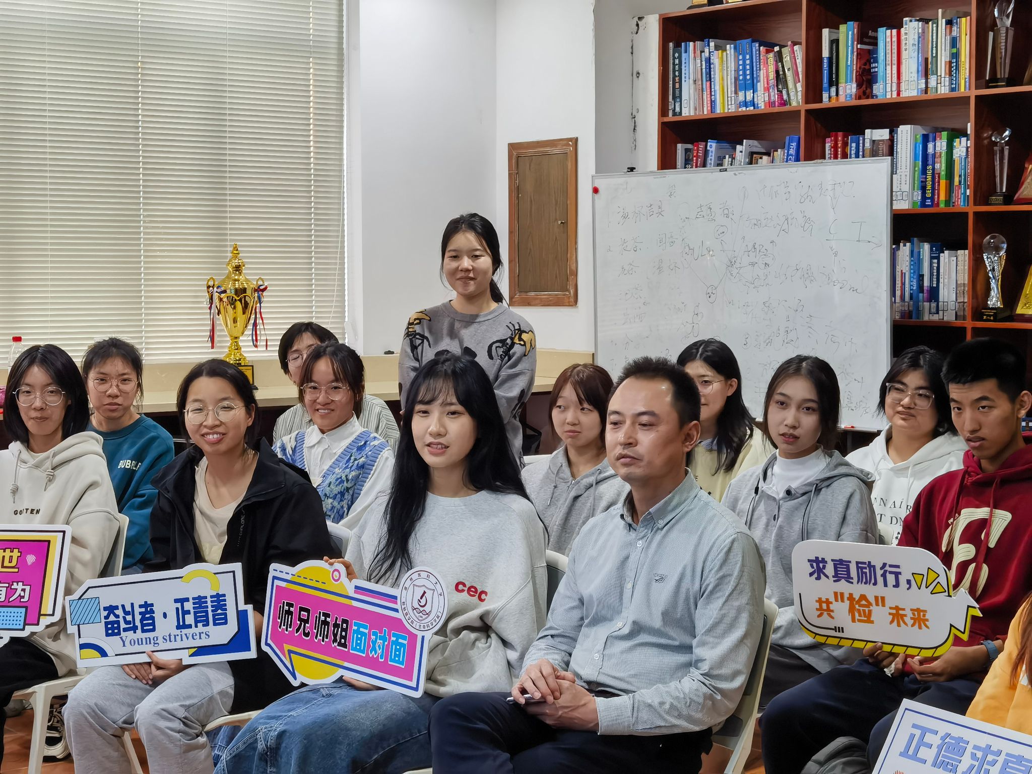 在互动环节,陈磊学长为学弟学妹们答疑解惑,就升学就业、创业条件、专业思想等问题与同学们进行了热烈的交流,他勉励同学们要正确认识自己,不断求索,孜孜不倦,努力提高综合素质,多尝试多挑战,勇敢面对学习实践中的困难。