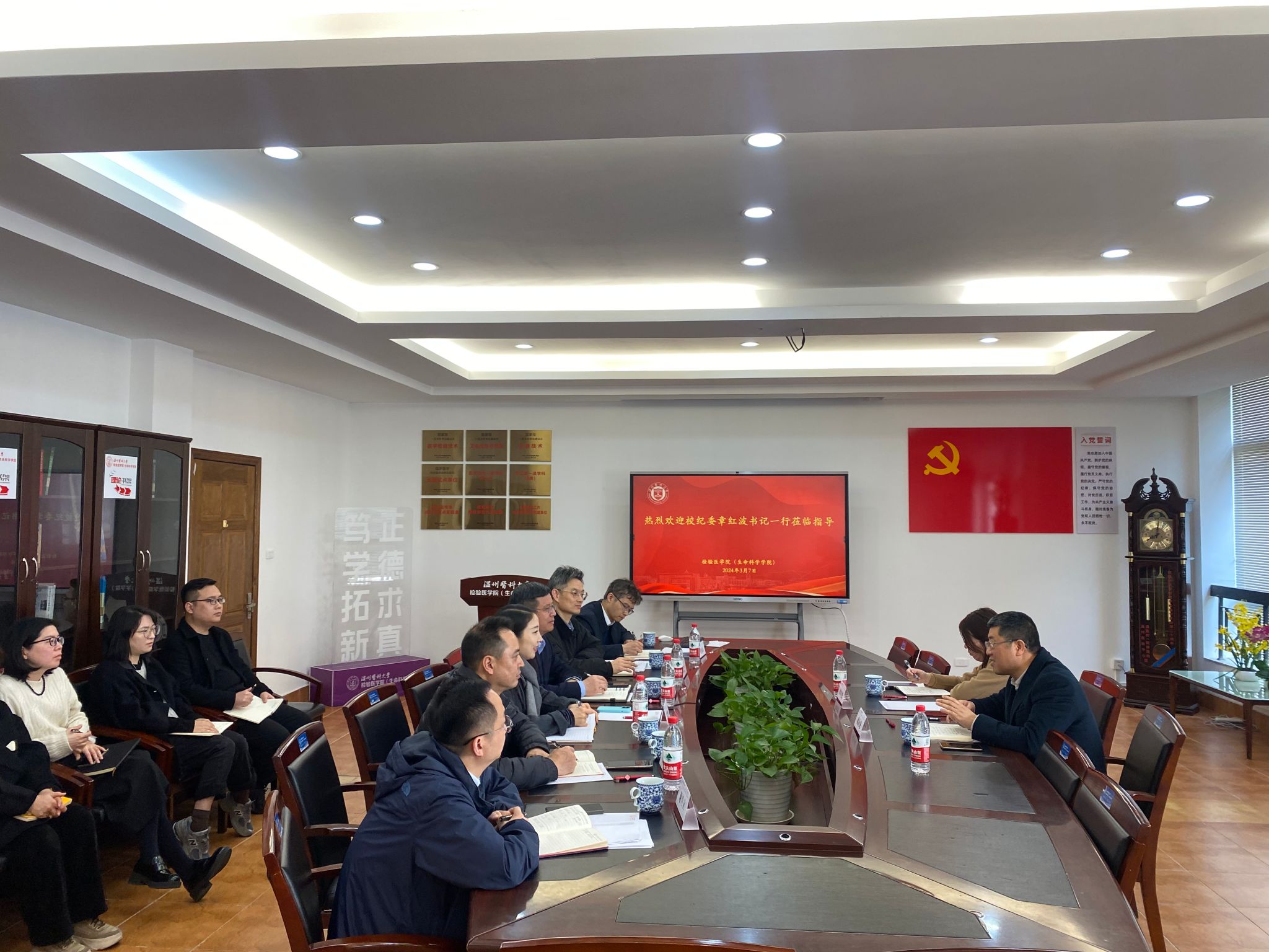 3月7日上午,公司党委委员、纪委书记章红波,校纪委副书记、纪检监察室主任戴向龙莅临学院调研指导工作,学院领导班子、全体科级干部参加调研座谈。