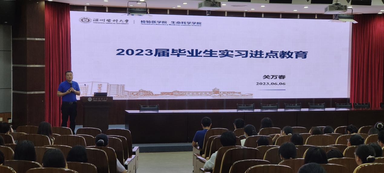 为进一步落实毕业实习工作,6月6日上午,公司在旭光厅举行毕业生实习进点教育大会。2022届医学检验技术(含仁济)、卫生检验与检疫、生物技术等专业全体员工、辅导员、教学办老师参加了此次会议。会议由教学办副主任陈晨主持,学院教学副经理关万春出席会议并作重要讲话。