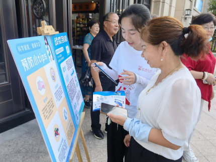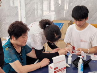 实践团成员们向前来参加活动的居民开展疫情科学防控赋能宣讲,联合永中街道卫生服务中心医生在尚悦园门厅里开展“医问长廊”义诊活动,提供血压、血糖测量、推拿问诊等义诊服务。