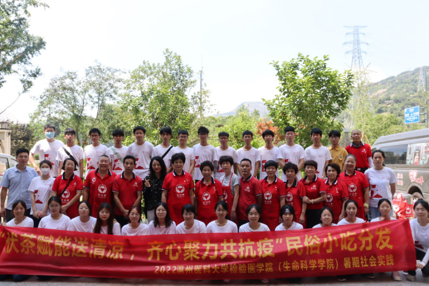 在小区门厅外,红日亭义工志愿者为大家制作健康防疫茶,同时制作温州民俗小吃:清凉可口的龟苓膏,口感酥脆的小麻花,新鲜出炉的烙饼,色香味浓的炒米线……实践队员们在维持现场秩序的同时进行科学防疫赋能宣讲,为社区科学防疫再添保障。