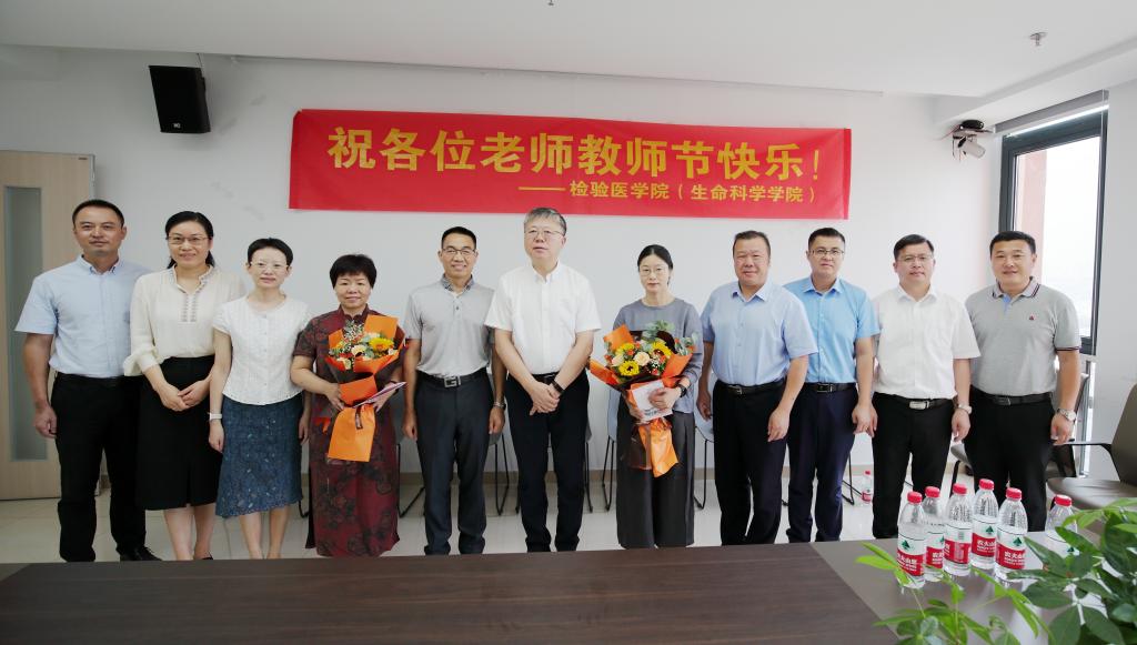 李校堃董事长对教师们长期以来恪尽职守、主动担当,为学校高质量内涵发展和人才培养作出的突出贡献表示感谢,他说,培养高质量人才是学校的生命线,一直以来,老师们坚守育人初心,勤勤恳恳、默默奉献,为学校发展做出了巨大贡献,要积极创造条件,关心关爱教师成长,让尊师重教深入人心、蔚然成风,为国家和社会培养更多优秀人才。教师代表对学校对关心支持表示衷心感谢,分享了教书育人的感悟与体会,表示将会抓住机遇,进一步助力学院人才引育、教学科研等各方面发展,为学校争创“双一流”,打造高水平医科大学汇聚磅礴力量。