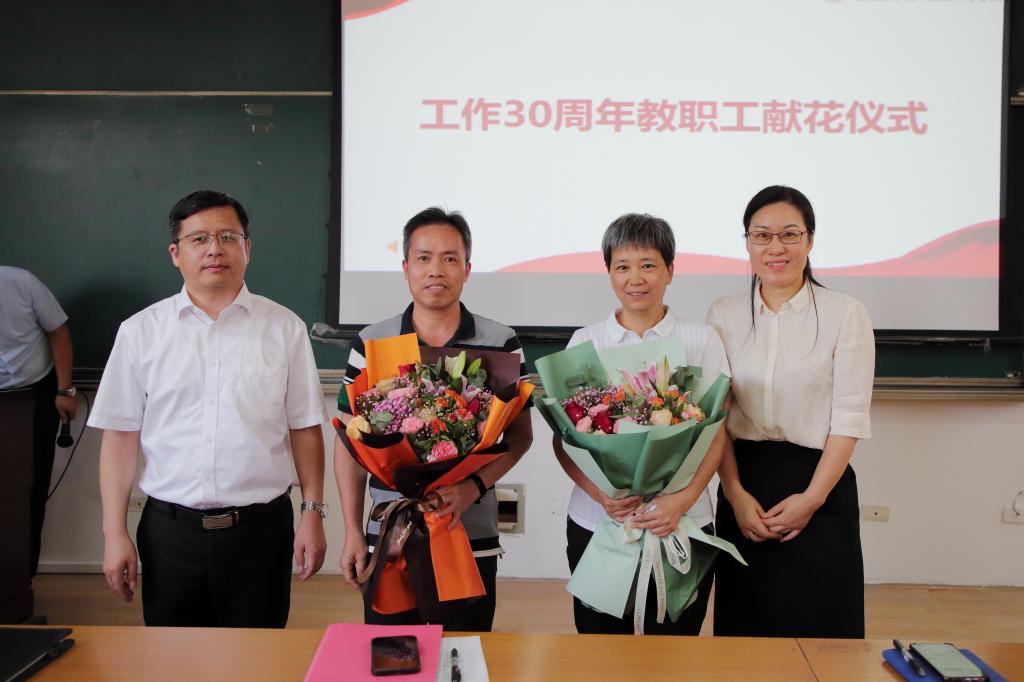 延续学院仪式文化传统,大会还进行了工作30年以上教师献花仪式以及新教职工欢迎仪式。学院通过献花仪式表彰和感谢潜心教书育人、师德师风高尚的优秀教师代表为学院发展所做出的的贡献,不断增强全院教职工的归属感、责任感和荣誉感,同时借欢迎仪式完成接续与传承,在学院中形成人人重视师德建设、人人践行高尚师德的良好氛围。