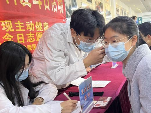 志愿者在校同德楼广场举行“爱耳护耳我最懂”和“让爱发声”志愿服务活动,通过知识问答、体验聋哑人生活等员工喜闻乐见的方式科普与传播听力健康知识,达到提升科学护耳理念。