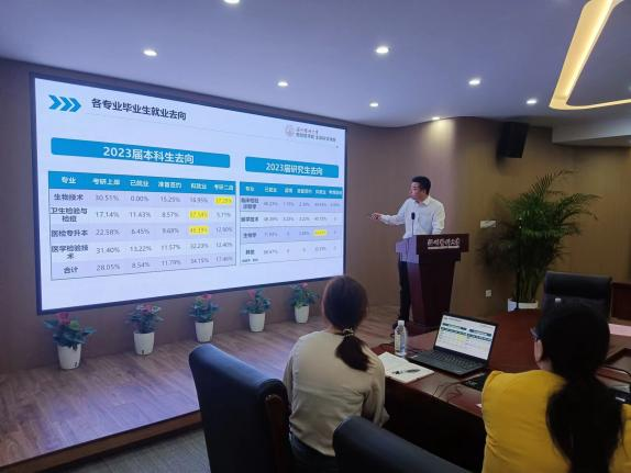 会上,员工工作部副部长卢益东围绕2023年就业形势、就业调查数据分析等方面作学工部就业育人促进工程专题报告。公司党委副书记陈贤新从“摸底数”“查问题”“破难题”三方面分析了学院就业和心理工作的现状、问题,并就下一步举措进行了汇报。