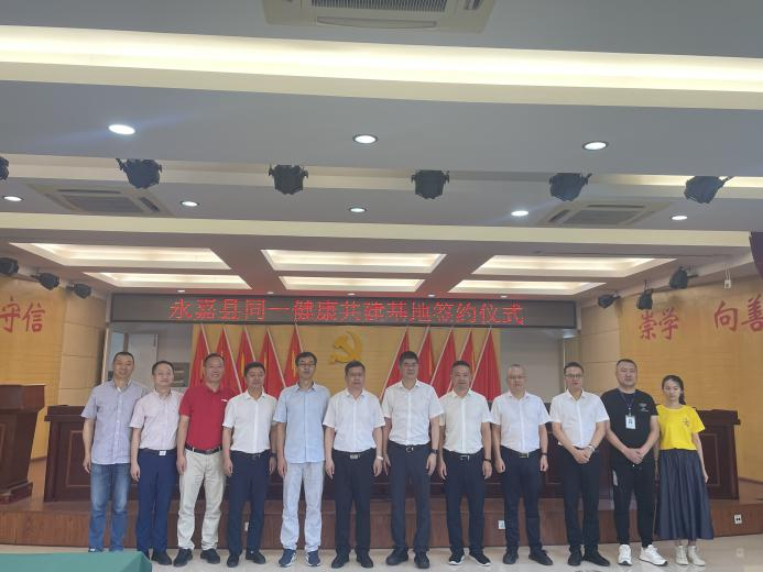 随后,执行经理郑晓群与县卫健局党委书记、局长滕翀敏签署同一健康共建基地协议书,并举行授牌仪式。