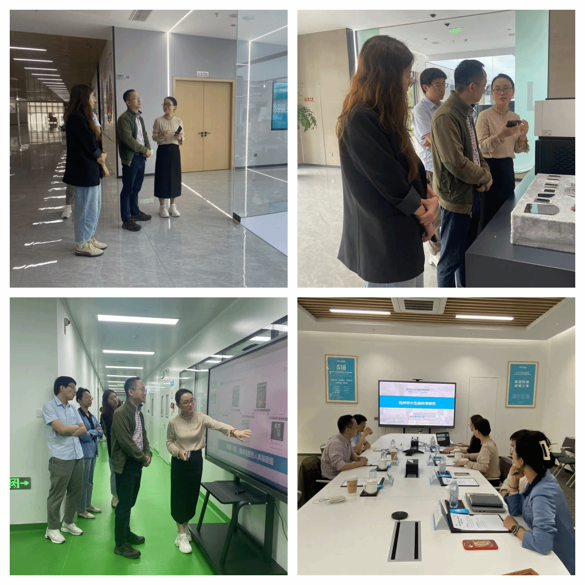 在杭州华大生命科学研究院,华大基因浙江区域总经理郑杨的带领下,访问小组依次参观和调研了研究院实习生办公环境、实验室环境、在研项目情况,郑杨总经理就华大集团的发展历程、业务范围、技术设备、发展前景等基本情况进行了介绍。